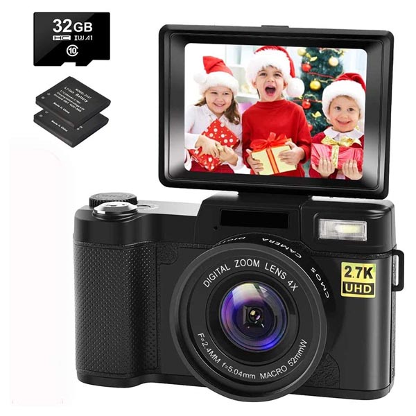Digital Camera Vlogging Camera with YouTube 30MP Full HD 2.7K Vlog Camera with Flip Screen 180° Rotation
